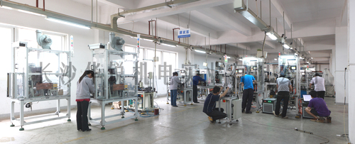 圖為我公司技術(shù)人員正在調試機器